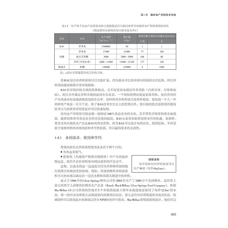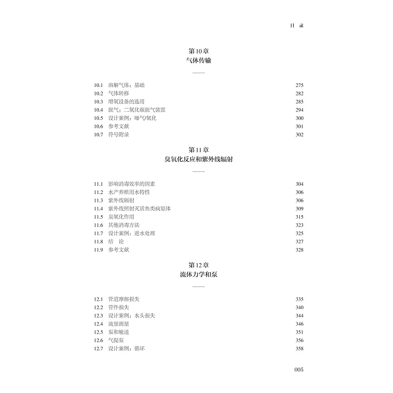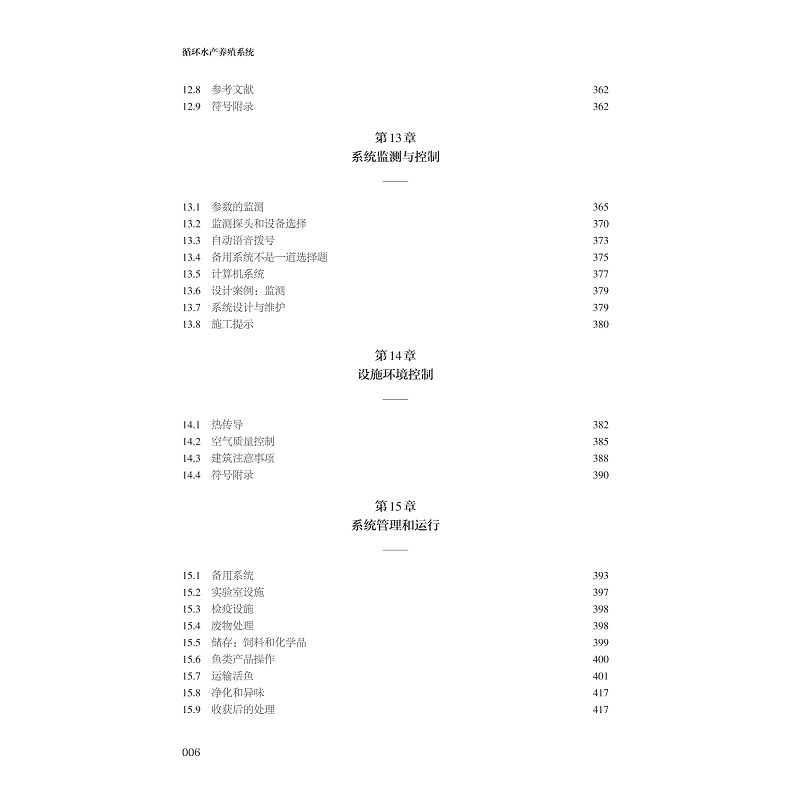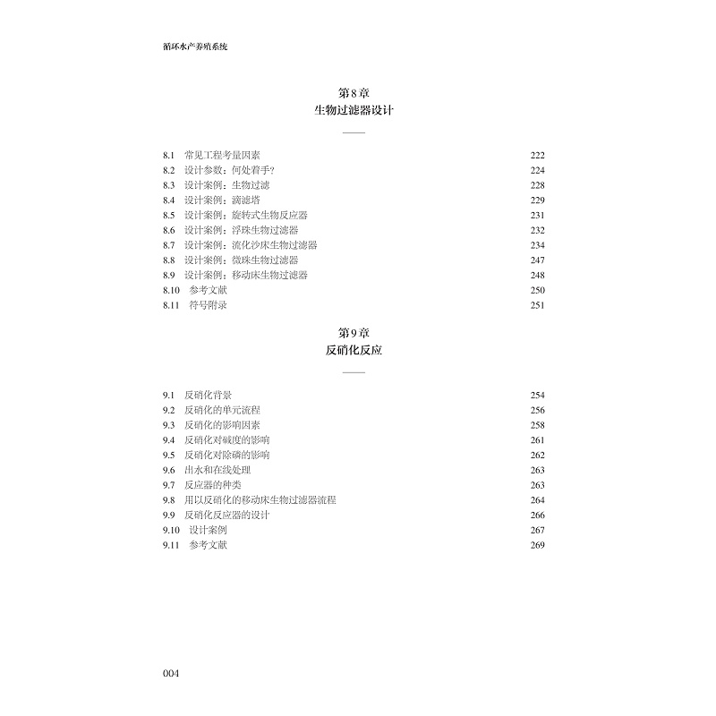 本書的章節設置為第1章RAS導論,客觀介紹了RAS的優缺點和應用情況,方便讀者快速了解RAS行業的背景;第2章至第14章分別詳細介紹了RAS中各個運行單元的原理、算法和設計案例括水質、養殖池設計、顆粒物去除、生物過濾、反硝化反應、氣液交換、消毒、水動力、系統監控和溫度控制等方面;第15章和第16章詳細介紹了系統的管理運營和魚類健康管理,為循環水系統的運營者提供了的管理規範和運營參考;第17章從投資人的角度分析如何成為一個合格的循環水養殖的投資者;第18章講解了佔據水產養殖生產直接成本的飼料與營養;第19章從單純水產養殖的角度向熱門的魚菜共生領域做了適當延伸,由於魚菜共生具有更高的水利用率,因此在某些地區和條件下也是一種優秀的模式;將中國的循環水產養殖作為第20章,朱松明教授結合國內水產養殖的發展特點,詳細介紹了中國循環水產養殖的幾種典型創新形式。第20章的增加,產生了“大”的第5版。