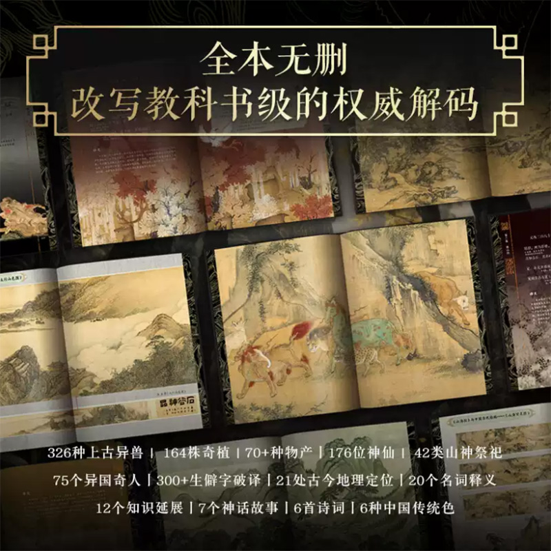 4.一本將知識點全打通的《山海經》:獨家整理70+珍稀物產、22處古今地理對照、21個專有名詞釋義、7個經典神話故事,還融合15幅中外古畫、6首古詩詞、6種中國傳統色等,並引入三星堆等文物考古成果進行文化溯源,將神話、歷史、地理、藝術、文學、考古全面串聯,構建出一張完整的“山海知識圖譜”,讓人越讀越上頭!