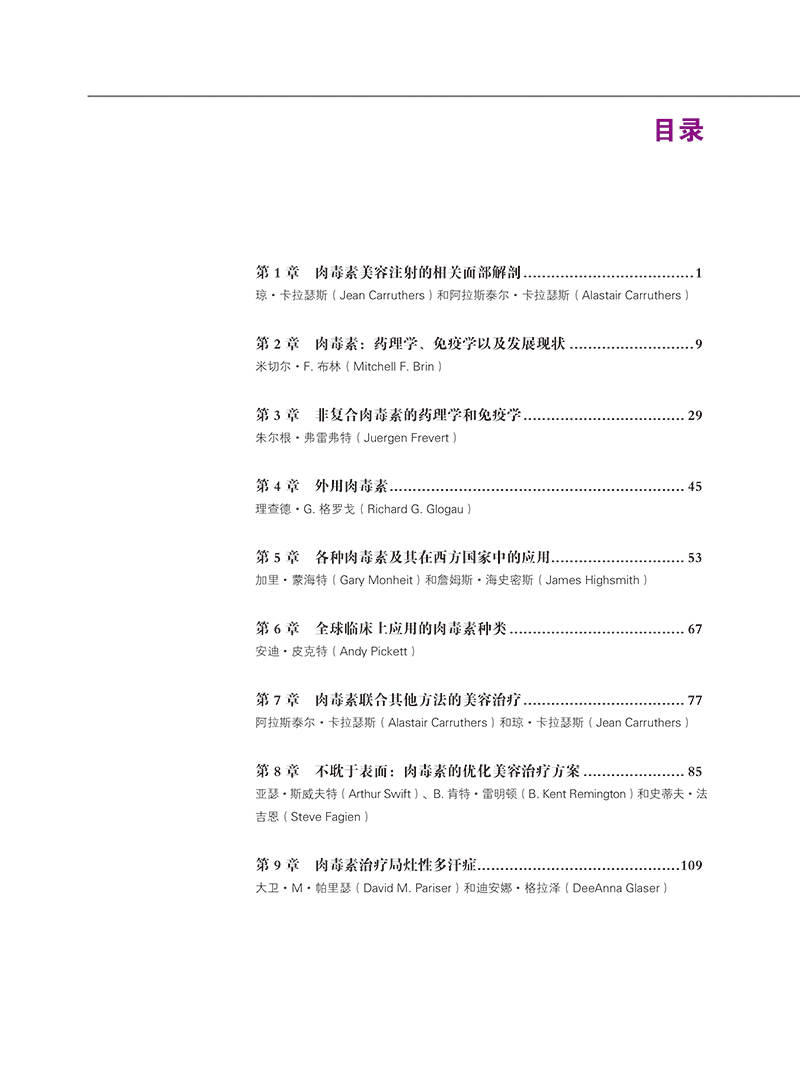 本書是一本非常全面介紹肉毒素注射的圖書,將國外的微整形專家們的經驗引入,會讓很多注射醫生受益匪淺。