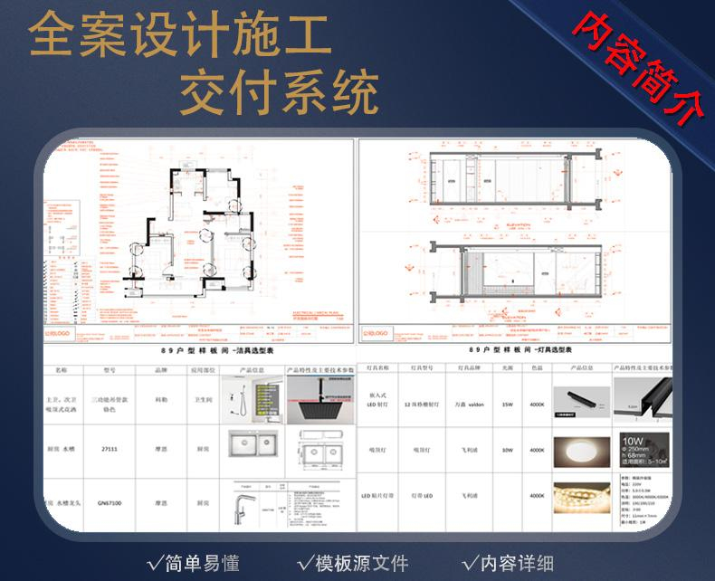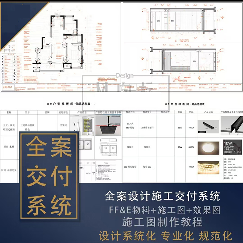 全案設計視頻教程 全案交付全套施工系統+物料表+效果圖+施工圖(128G U盤發貨,無需下載 即插即看,手機電腦都能看)