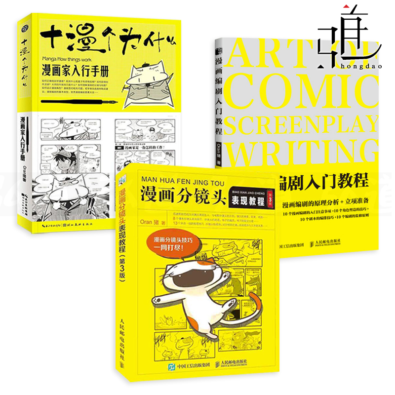 Oran豬漫畫教程套裝3冊 漫畫分鏡頭表現教程+漫畫編劇入門教程+十漫個為什麼 新手學畫漫畫技法 動漫技法角色分鏡教學