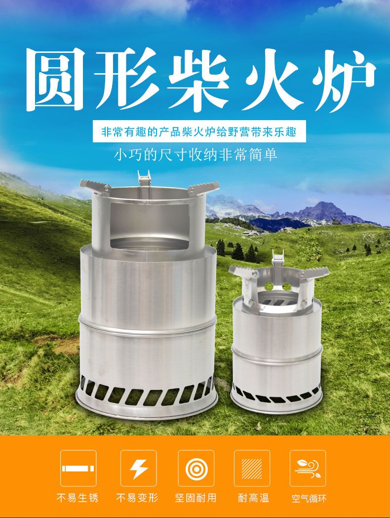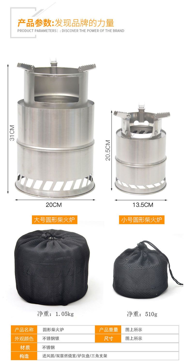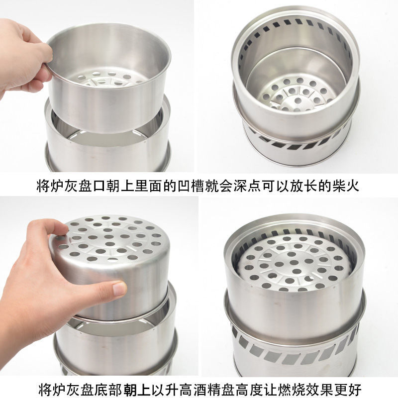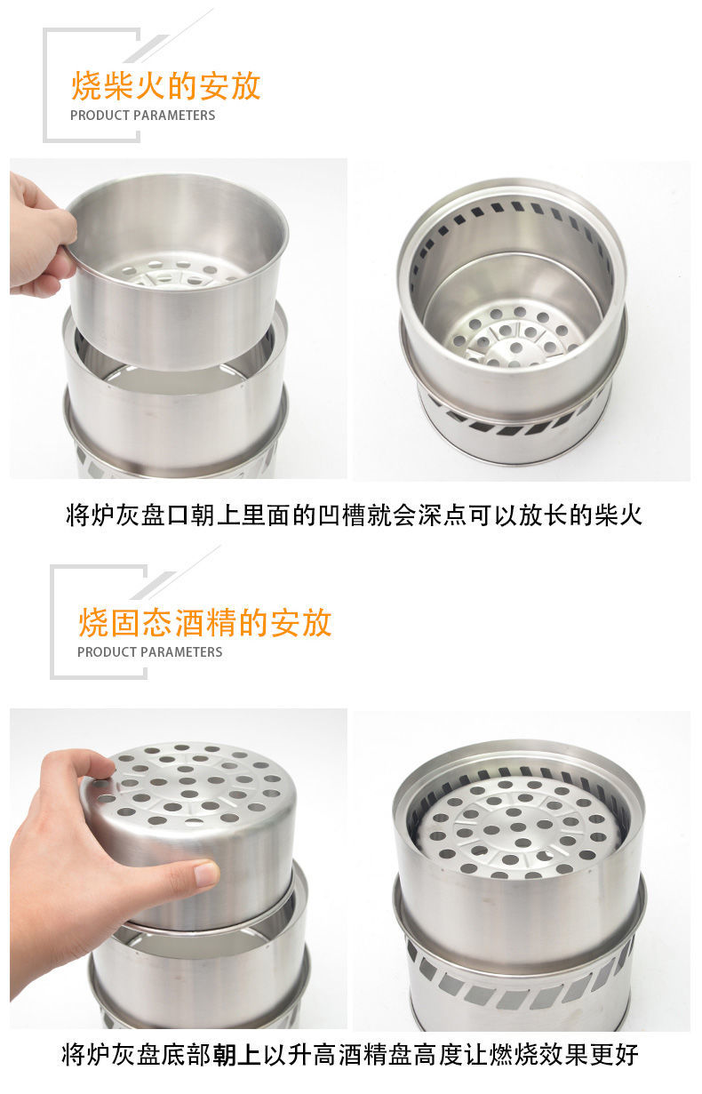 戶外便攜式折疊圓形柴火爐 野外木炭爐固體酒精爐 加厚不銹鋼野炊爐具