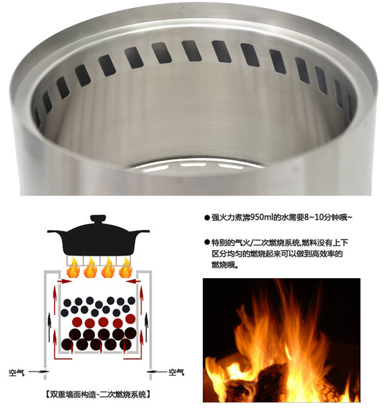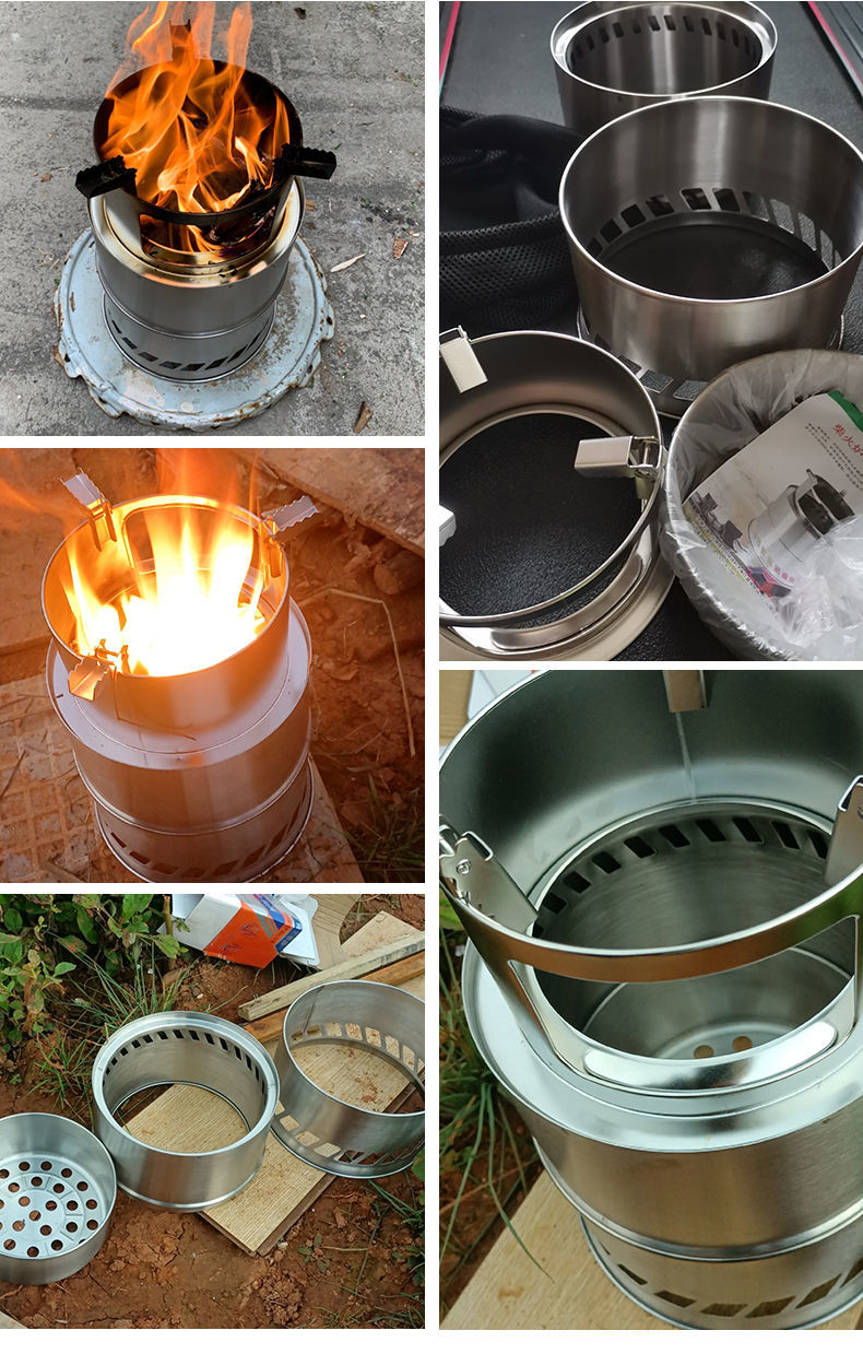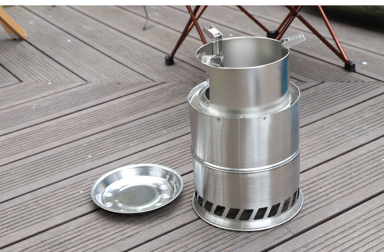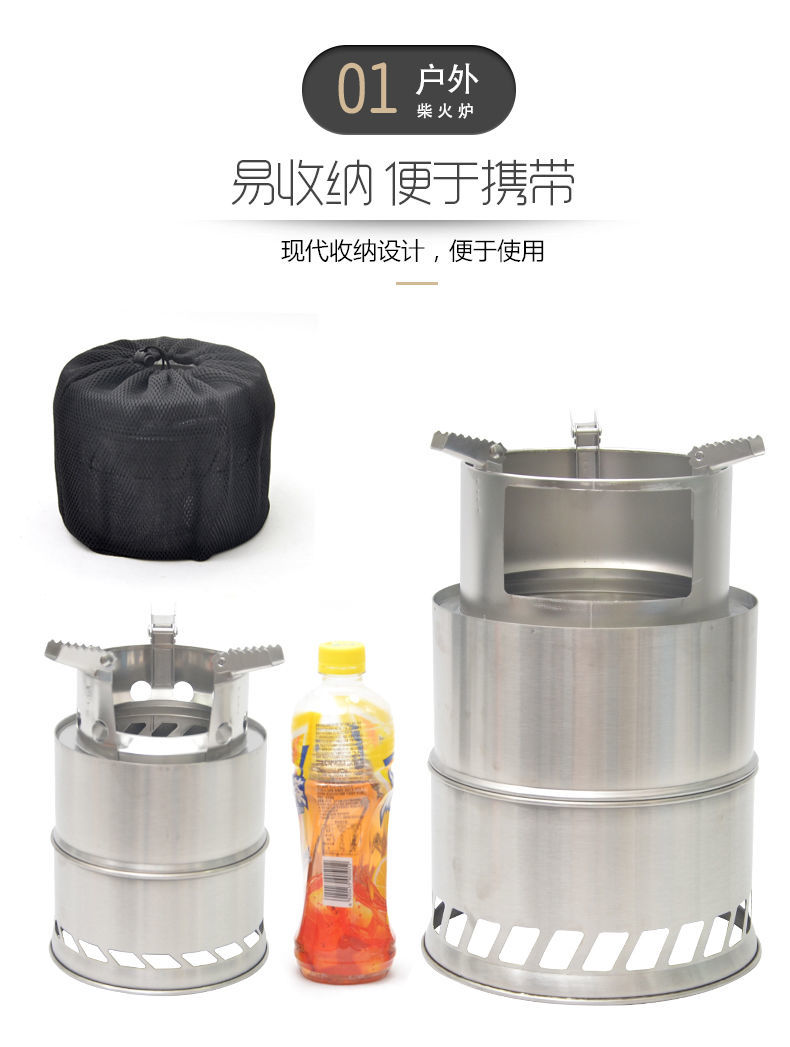 戶外便攜式折疊圓形柴火爐 野外木炭爐固體酒精爐 加厚不銹鋼野炊爐具