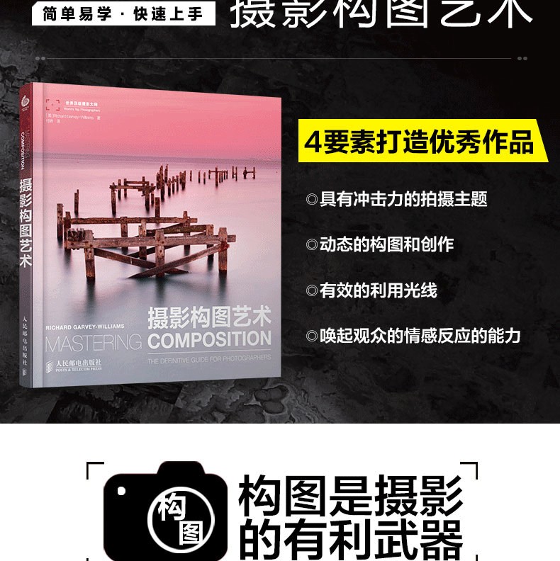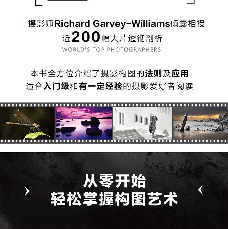 不同於常見的講解攝影構圖方法的工具書,《攝影構圖藝術》將攝影的構圖上升為一種對美學原理的探討。在這個過程中,作者以簡單易懂的分析和適當的範例,建立起一套關於攝影構圖可以遵循的規則和方法。 《攝影構圖藝術》內容並不是單純地講解攝影構圖,作者在書中提出了構成優秀攝影作品的4個要素,其中能夠喚起觀眾的情感反應是其中最重要的一個要素。無論是剛入門的攝影初學者,還是已經有一定程度的攝影發燒友,透過本書,都能深入學習和深刻理解構圖是如何在傳達攝影師創作意圖中發揮作用的。