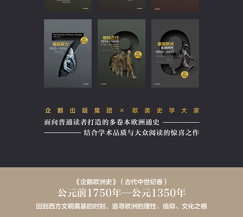 “企鵝歐洲史”系列是企鵝蘭登出版集團集合歐洲史權威學者,歷時十餘年,為大眾打造的一套全景歐洲史,堪稱“當代出版界的巨制”。全套共九卷,將公元前1750 年至今的歐洲史分為九段,全方位展現歐洲近四千年來形成、興起、衰落、變革、分裂、融合的歷史進程。