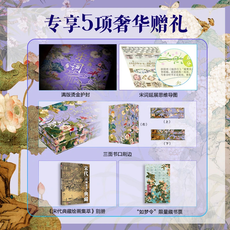 《經典宋詞》全註全譯全彩(全2冊) 精裝16開 三面刷邊 全書共800頁 重3KG隨書附贈 宋代繪畫集萃+如夢令藏書票+宋詞延展思維導圖