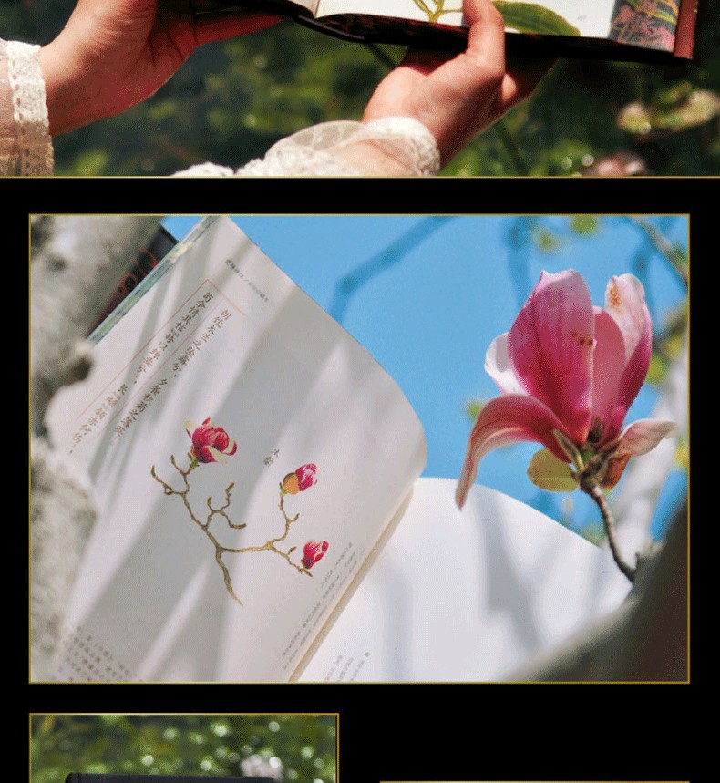 80g藝術紙張全彩印刷,圓脊布面精裝,可平展賞閱詩文與彩圖