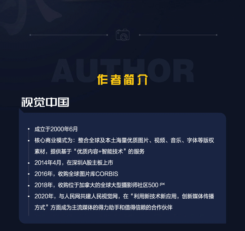 視覺中國 500px是 的專業攝影師社區,聚集了來自不同 的數万位創意攝影師與上千萬攝影愛好者。 500px社區集合各方優勢資源,編著本系列教程,以期為廣大攝影愛好者提供 好的服務。