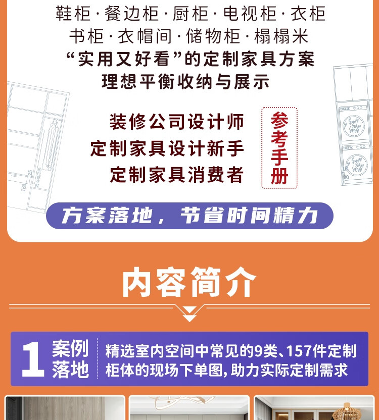 1. 為讀者提供了精選室內空間中常見的9類、157件定制櫃體的現場下單圖,本書遵循“實用又好看”的設計原則,致力於在實際定制需求中找到理想的平衡點。