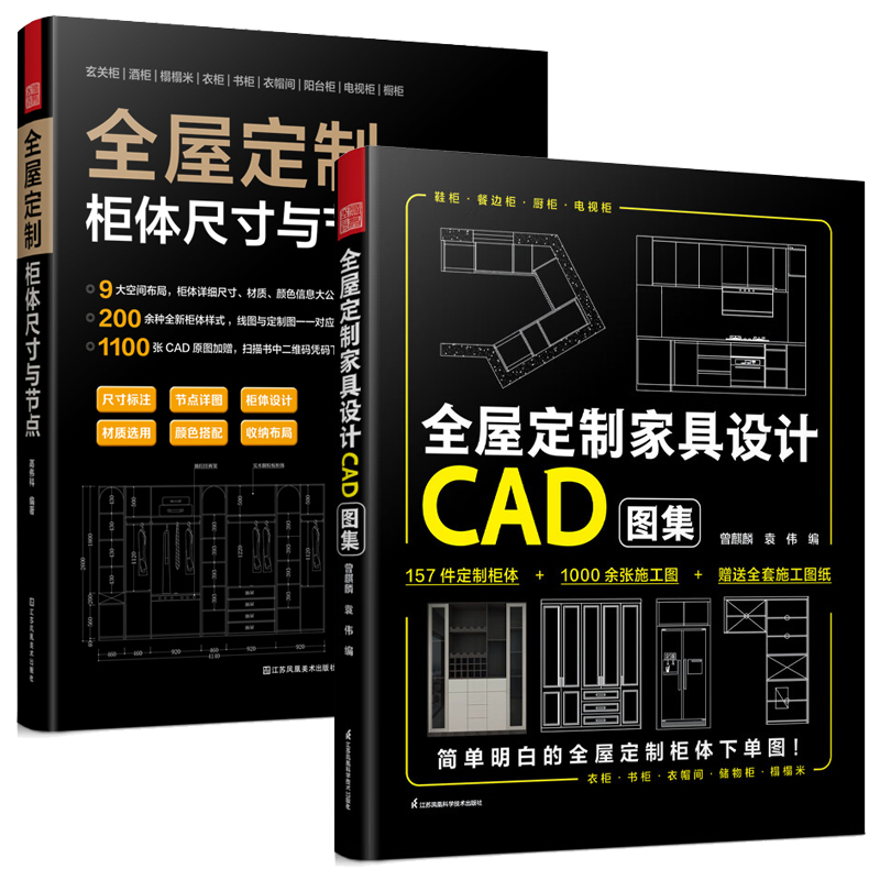 全屋訂製:櫃體尺寸與節點+家具設計CAD圖集(共2冊)
