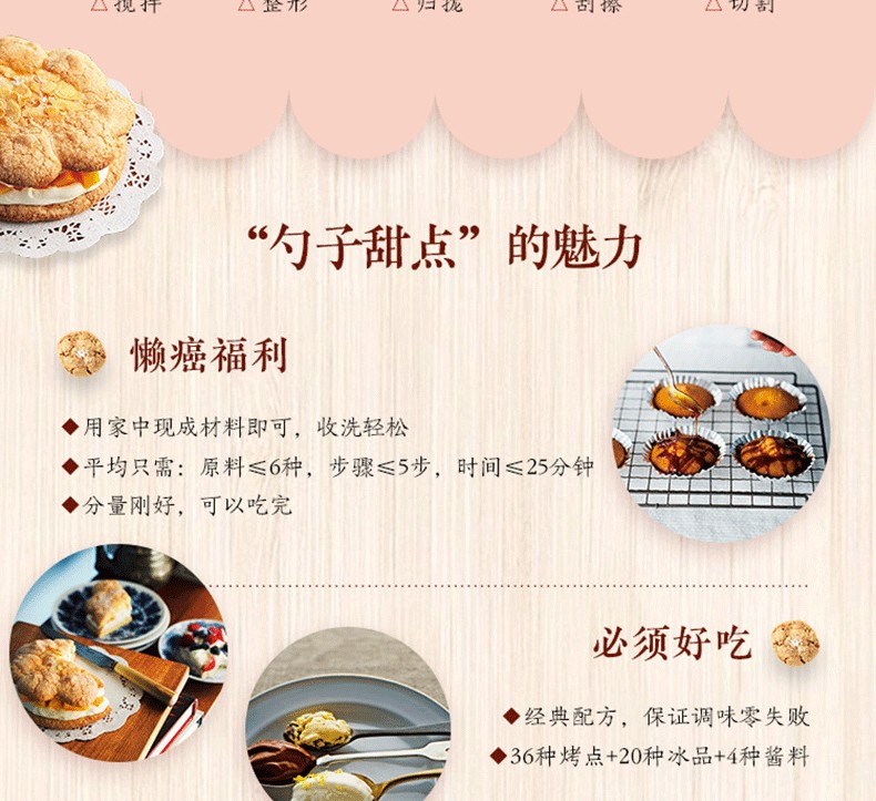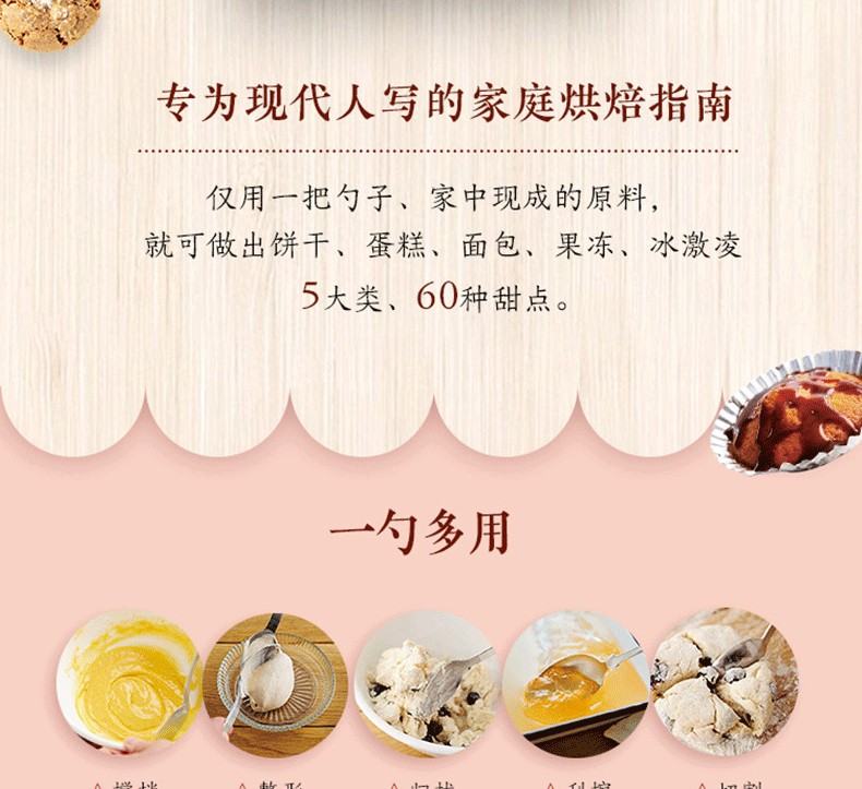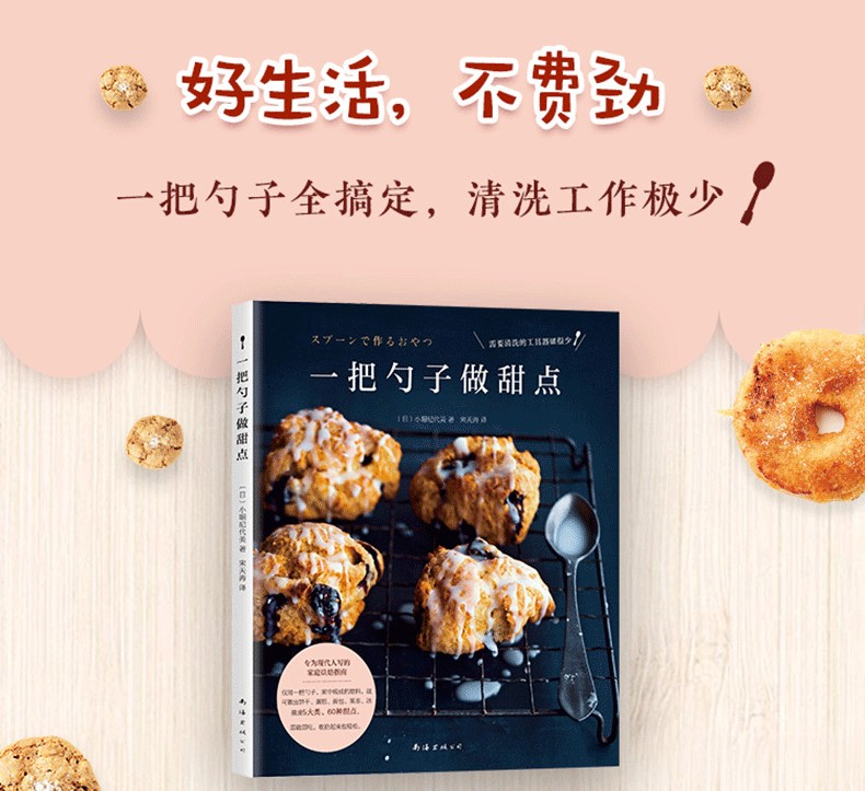小堀紀代美著的《一把勺子做甜點》專為現代人寫的家庭烘焙指南。僅用一把勺子、家中現成的原料,就可做出餅乾、蛋糕、麵包、果凍、冰激凌5大類、60種甜點。即做即吃,收拾起來也輕鬆。