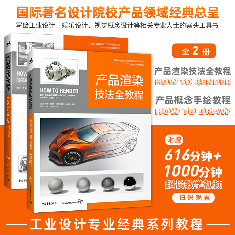 產品渲染技法全教程+產品概念手繪教程 2冊 工業設計 模型設計 視覺設計(掃碼觀看1000分鐘教學視頻)